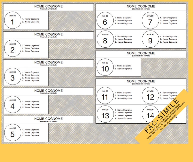 - IL FAC SIMILE DELLA SCHEDA ELETTORALE CON 14 LISTE (versione PDF).