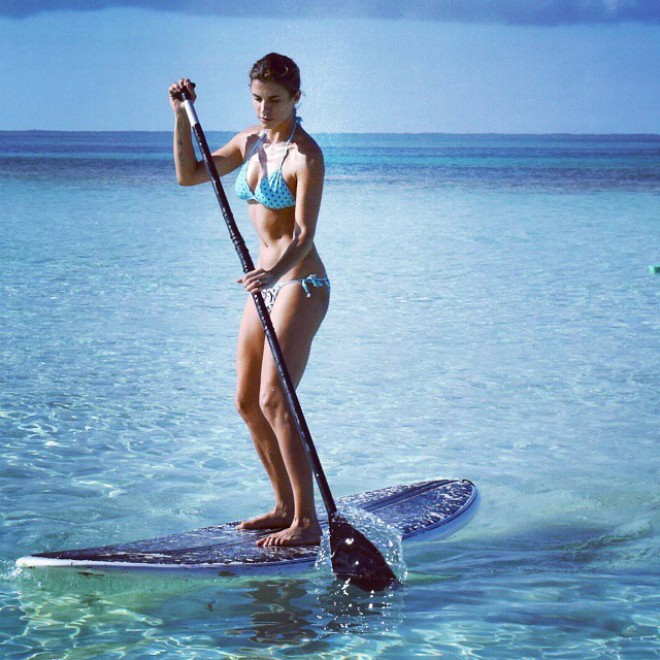 Lashowgirl italiana ha postato su Instagram alcune foto della vacanza che svelano il segreto del suo fisico in forma: il paddleboard, sport acquatico che si pratica con una tavola e un remo.