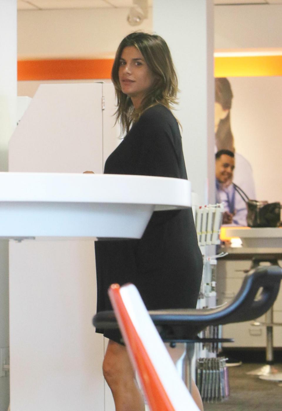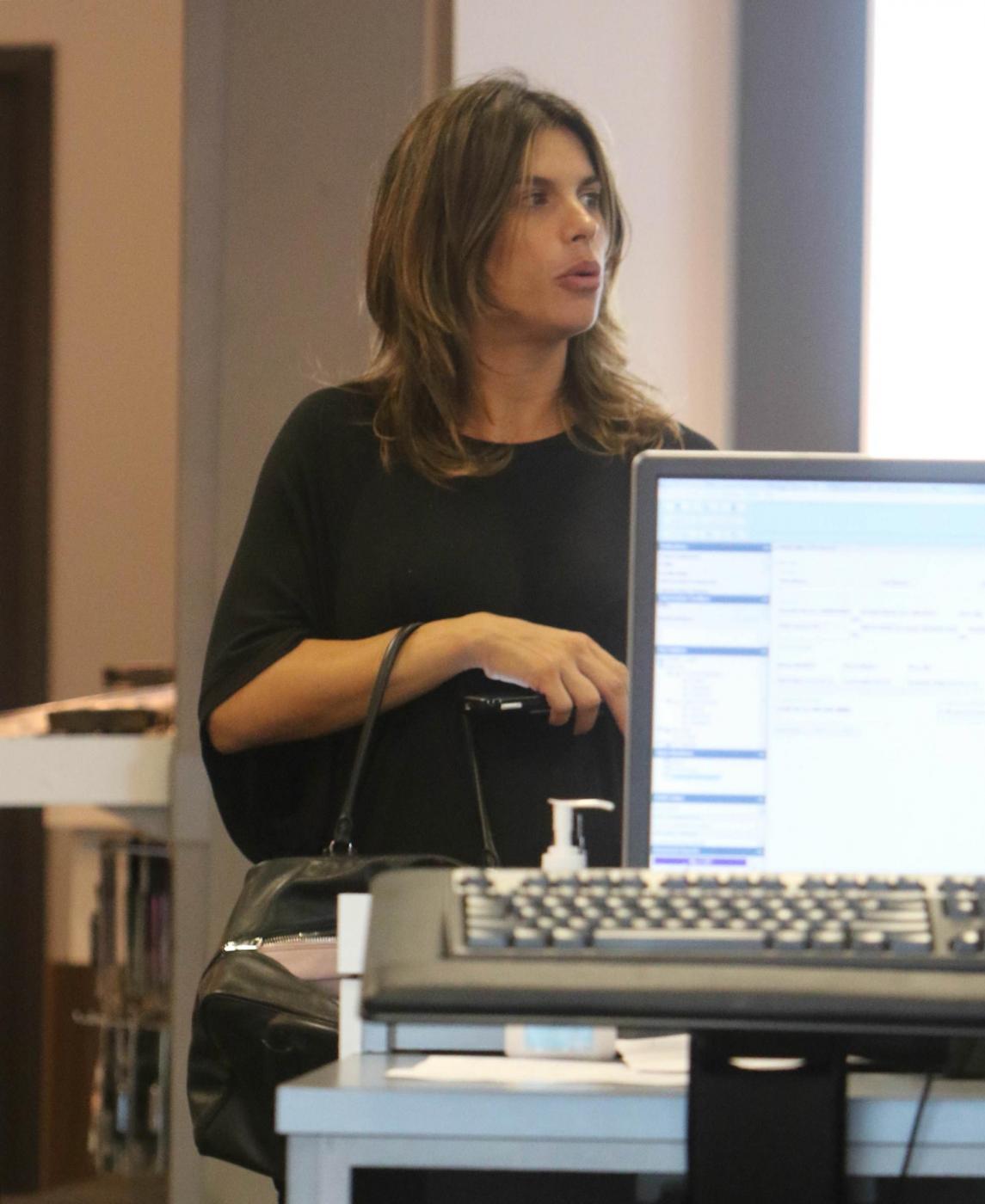 Per coprire il pancione la Canalis indossa una maglia nera molto ampia, che la fa da vestito, abbinata a delle semplicissime infradito. Niente trucco per la futura mamma e capelli sciolti senza piega. Decisamente ora fra le priorità di Elisabetta non c’è quella di apparire perfetta ma di prepararsi al grande evento. Foto LaPresse: