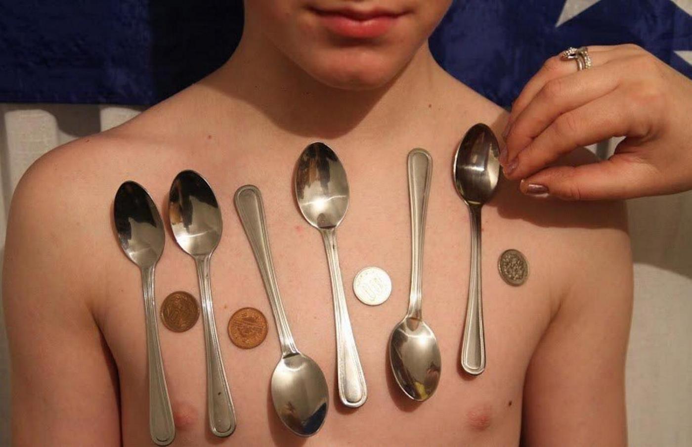 ROMA – Elvir Silayciya ha 13 anni ed è originario della Bosnia Erzegovina. Elvir potrebbe entrare nel Guinness dei primati per una sua qualità con cui è nato: il giovanissimo è infatti in grado di attirare a sé gli oggetti grazie a un effetto magnetico esercitato dal suo corpo nei confronti degli oggetti metallici. Non si tratta del primo caso: a novembre scorso era stata rilanciata sui siti internazionali la notizia di Nikolai Kryaglyachenko, un altro bambino questa volta di 12 anni, che è in grado di attrarre a sé corpi metallici. Per Nikolai, il tutto era cominciato dopo aver subito uno choc elettrico (foto LaPresse).