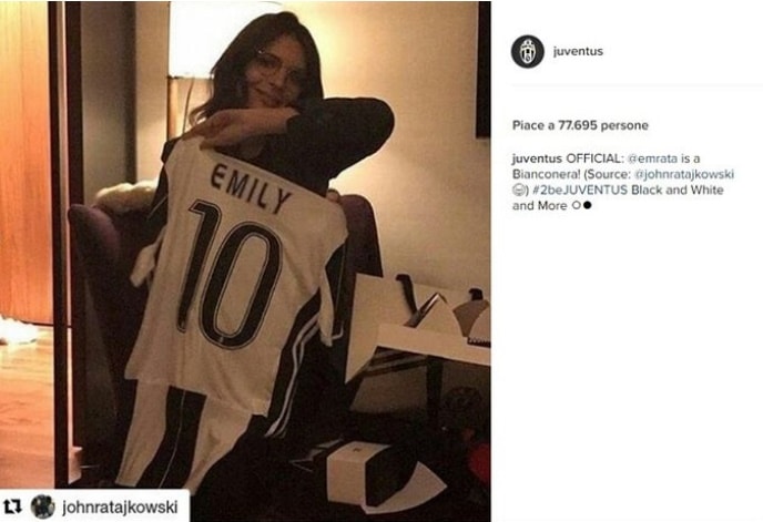 ROMA – La supermodella statunitense Emily Ratajkowski pubblica una foto su Instagram in cui appare [App di Blitzquotidiano, gratis, clicca qui,- Ladyblitz clicca qui –Cronaca Oggi, App on Google Play] con la maglia numero 10 della Roma. “Emrata” c’è scritto sulla schiena (al posto di Totti, il mitico Capitano, ex numero dieci della Roma ndr).