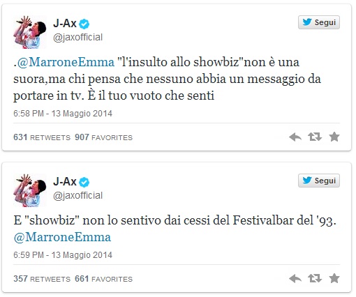 Pronta la risposta su Twitter di J-Ax, che nel corso della trasmissione si è eretto a paladino di Suor Cristina: