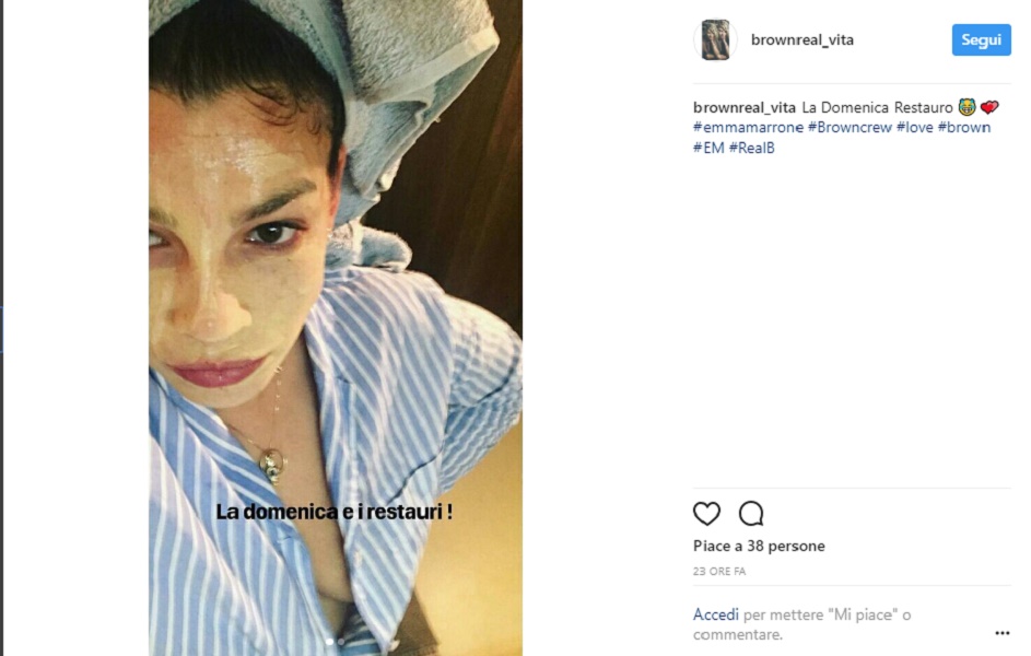 LECCE – Emma Marrone passa la domenica a “restaurare” il suo look. In uno scatto dedicato ai suoi follower di Instagram, la cantante salentina appare con la camicetta del pigiama sbottonata.