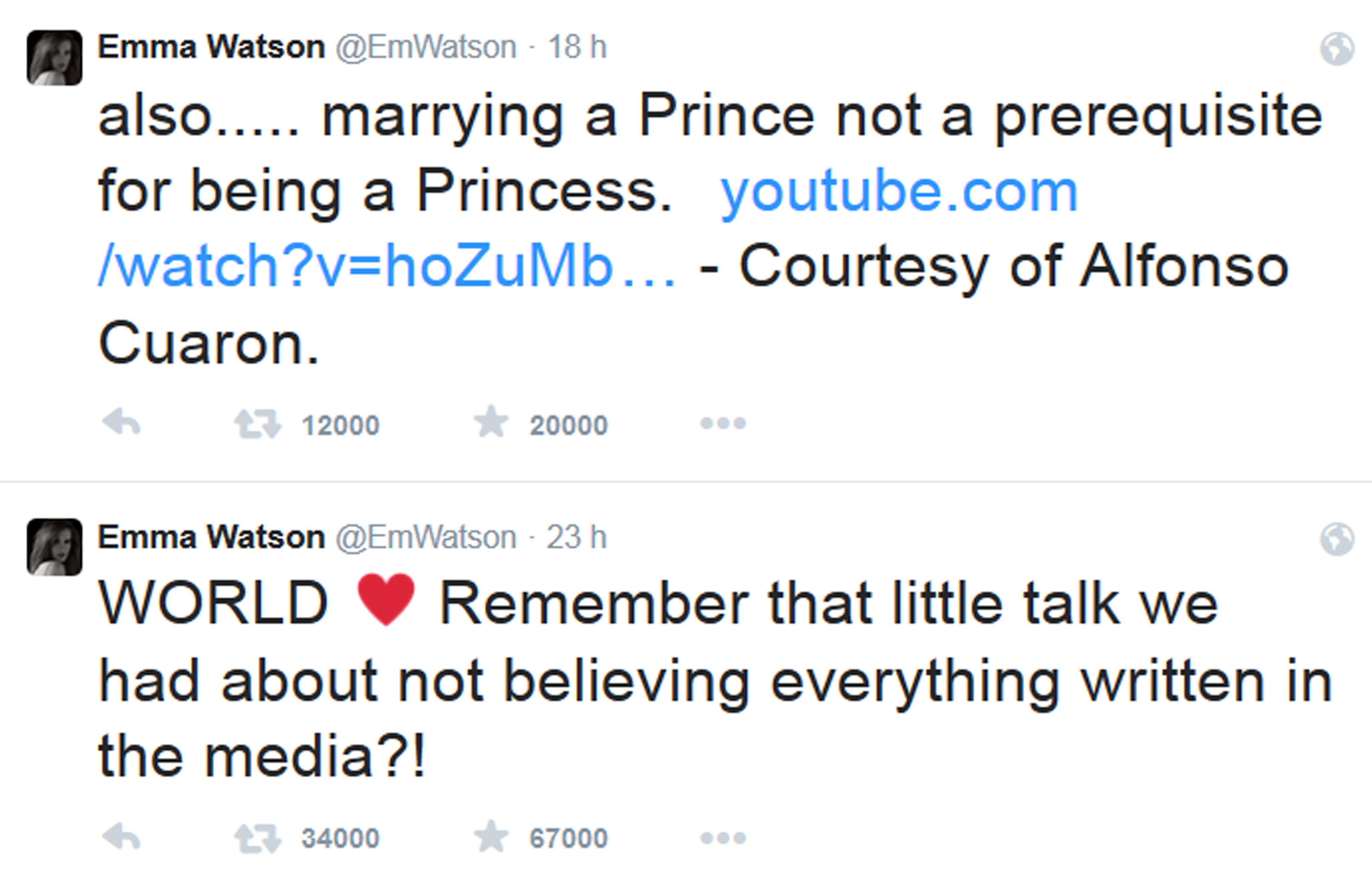 LONDRA – Emma Watson e il principe Harry sono innamorati? Ad averlo fatto intendere sarebbe stata una fonte vicina a entrambi in un’intervista ad una magazine femminile australiano nel weekend e i social network sono impazziti. E’ il gossip del momento nonostante l’attrice protagonista della saga di Harry Potter abbia già smentito su Twitter. “Non bisogna credere a tutto quello che dicono i giornali”, è stata la sua replica alla quale è seguito: “Sposare un principe non è un prerequisito per essere una principessa”. Un tweet di impronta più femminista, in linea con il recente impegno della Watson nella campagna dell’Onu ‘He for She’, per promuovere l’uguaglianza di genere.
