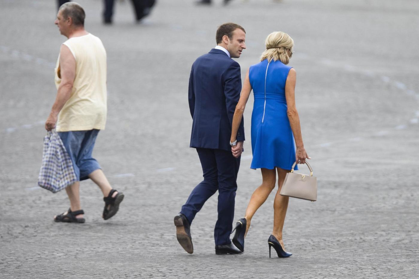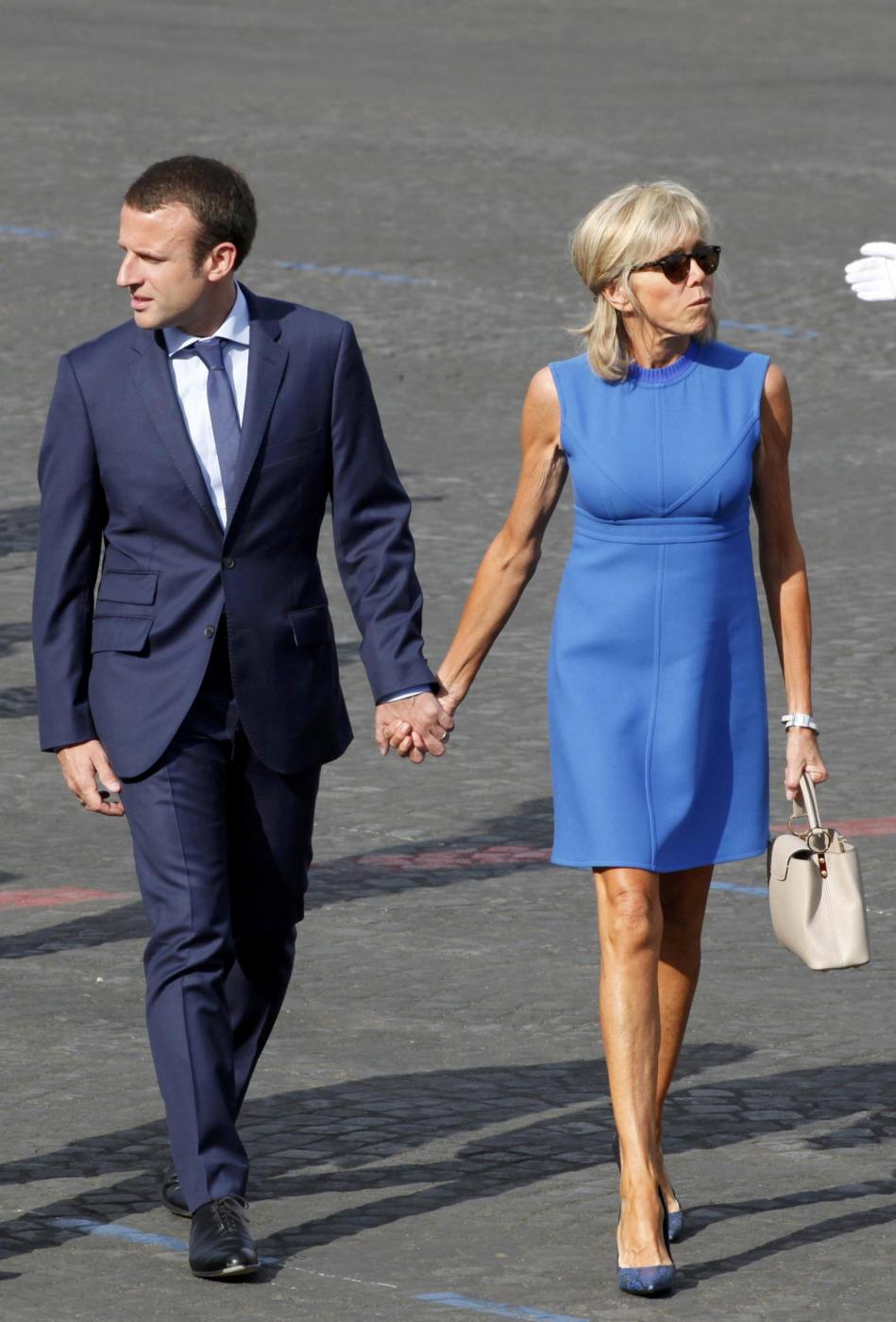 Non solo, ciò che indubbiamente incuriosisce è il cliché che questa coppia incarna: lo studente e la fascinosa prof di francese, chi non si immedesima in una storia del genere? Chi al liceo ha avuto una professoressa anche solo appena giovane e graziosa ricorderà sicuramente con nostalgia i sospiri che l’insegnante suscitava. A maggior ragione nel caso di Brigitte che a 35 o 40 anni (quando Macron era un adolescente) doveva essere davvero bella. I due sono guardati con curiosità, interesse, forse un filo di malizia: lei alle seconde nozze e con figli grandi, lui al primo matrimonio e senza figli. Alla parata del 14 luglio si sono presentati mano nella mano, il giovanissimo ministro e la sua prof, per l’occasione con un tubino blu e tacchi a spillo, abbronzatura un filo eccessiva e, grazie al cielo, nessun sospetto di botox su zigomi e fronte.