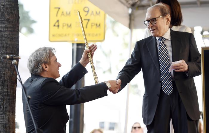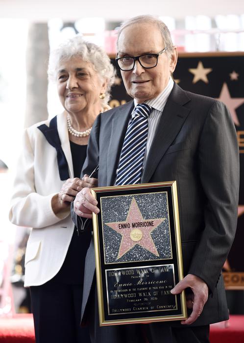 LOS ANGELES – Ennio Morricone ha finalmente la sua stella sulla Walk of Fame. Il prestigioso riconoscimento gli è stato conferito nella mattinata a Los Angeles dalla Camera di Commercio di Hollywood che lo ha onorato due giorni prima della cerimonia di premiazione degli Academy Awards, approfittando della straordinaria presenza del compositore italiano nella città del cinema. Morricone era accompagnato dalla moglie Maria e dai figli Giovanni e Andrea.
