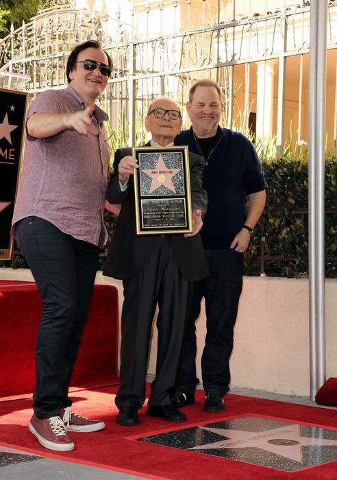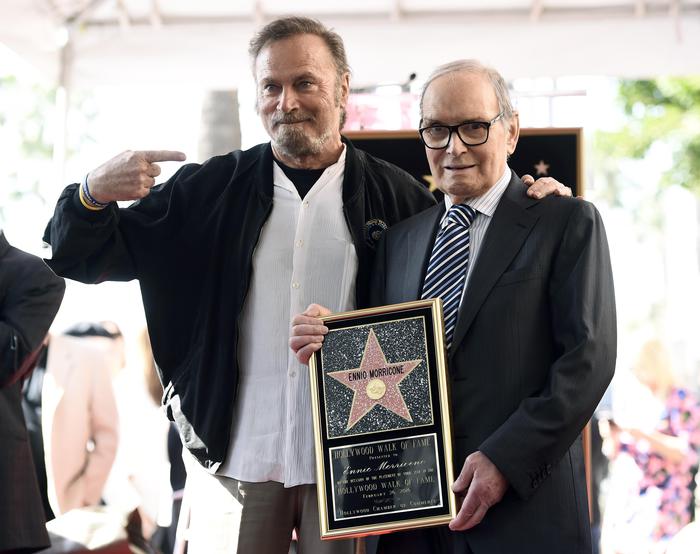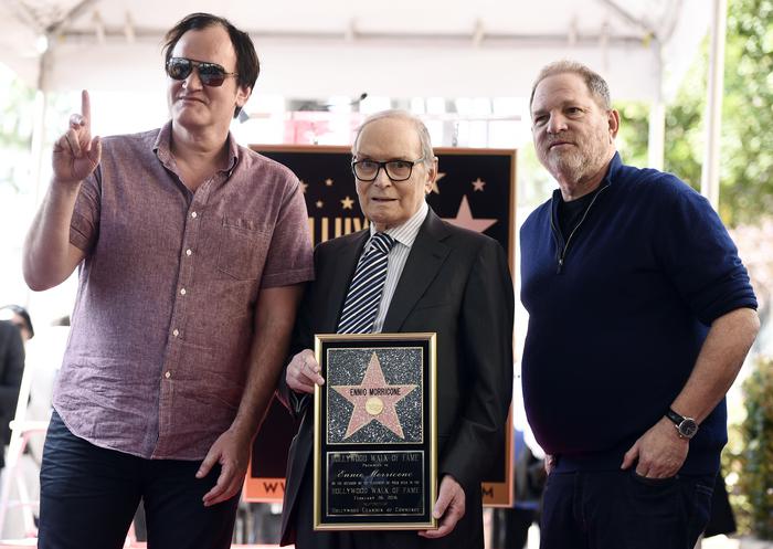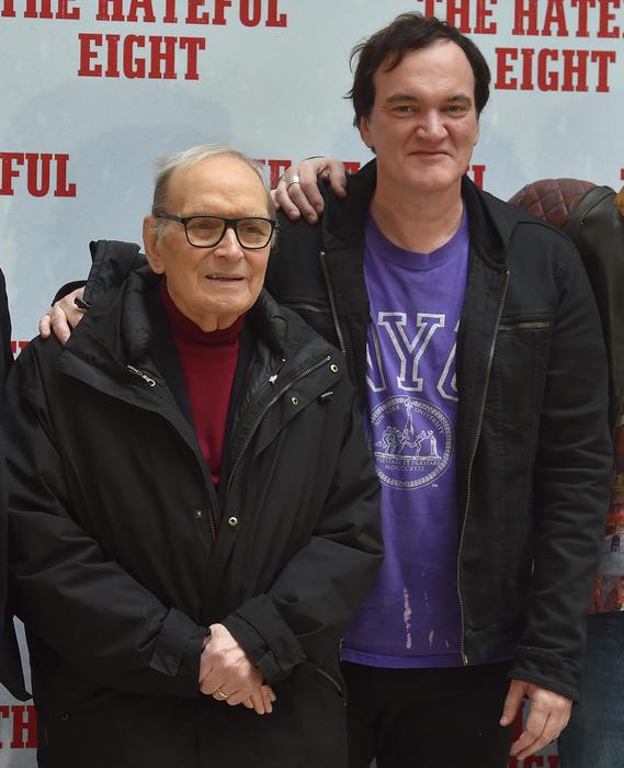 Morricone, unico rappresentante italiano alla prossima edizione degli Oscar, è in corsa, da favorito, con la colonna sonora di Hateful Eight, l’ultimo film di Quentin Tarantino e il regista di origini italiane, insieme ad Harvey Weinstein, ex patron della Miramax, era presente sull’Hollywood Boulevard e ha voluto ringraziare un’altra volta il suo compositore preferito con cui ha lavorato anche a Kill Bill, Bastardi senza gloria e Djiango. “Il regalo più grande che ho ricevuto facendo questo film è l’amicizia con il maestro Morricone”, ha detto Tarantino, aggiungendo una curiosità: “Ho realizzato solo di recente che nella mia infinita collezione di dischi, Morricone è più presente di Elvis, Bob Dylan e i Beatles”.