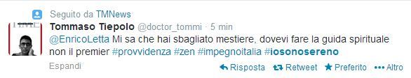 ROMA – Un mese fa Matteo Renzi, ospite di Laura Bignardi alle Invasioni Barbariche, tentava di rassicurare il premier con un hashtag #enricostaisereno, divenuto subito un trend. Oggi che la staffetta sembra quasi tramontata, Enrico Letta non solo non si dimette, ma lancia un altro hashtag zen: #sonosereno. Lo ha detto in conferenza stampa mentre lanciava il suo Impegno Italia. E la rete non ha tardato a rispondere: tempo poche ore e centinaia di tweet di risposta sono stati lanciati, sotto il nuovo hashtag presidentziale. Il più divertente: “Enrico #iosonosereno… variabile”.