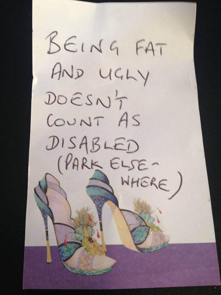 LONDRA – “Essere grassa e brutta non ti rende disabile. Parcheggia altrove“. Questo il biglietto che Sarah Metcalfe, una donna disabile in attesa dell’apposito pass per parcheggiare sulle strisce gialle, ha trovato sulla sua auto all’uscita da un supermercato Tesco.