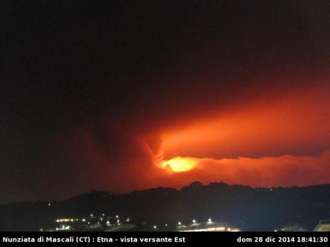 CATANIA – Spettacolare nuova fase eruttiva sull’Etna, tra le 18 e le 20 di domenica 28 dicembre. Dai crateri di quota 2.900 metri è emersa una fontana di lava accompagnata da esplosioni subito immortalata dagli smartphone degli abitanti di Catania e dei comuni che sorgono alle pendici del vulcano siciliano.