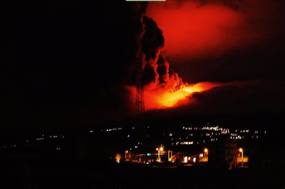 L’eruzione ha dato forza a fontane di lava dal nuovo Cratere di Sud Est ed all’emissione di cenere lavica, spinta dal vento in direzione Est, che è caduta sui centri abitati di Milo, Fornazzo, Sant’Alfio e Giarre.