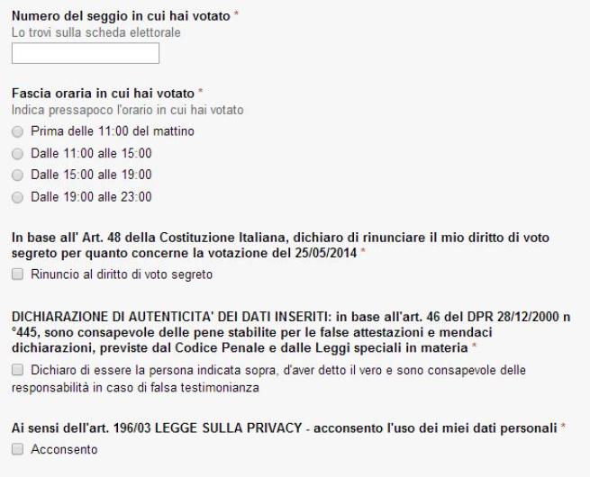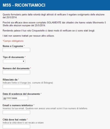 Si legge: “Questo formulario parte dalla volontà degli attivisti di verificare il regolare svolgimento delle elezione del 25/5/2014″.