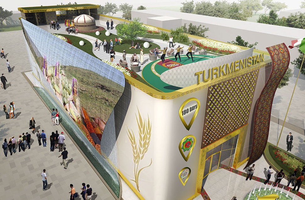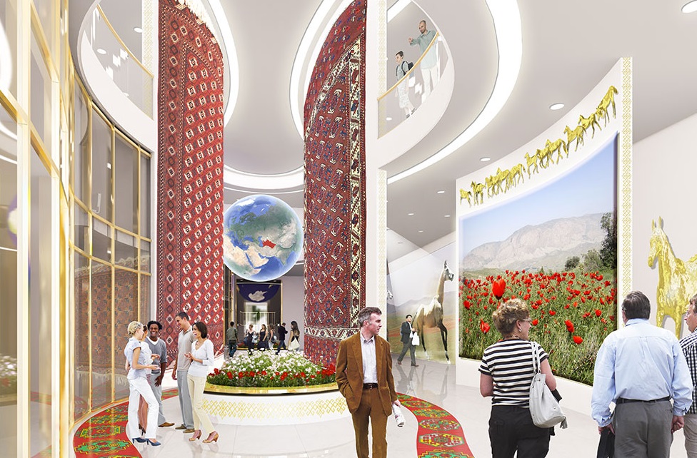 Nel padiglione è stata anche ricostruita una tradizionale yurta turkmena, mentre alle pareti ci sono tappetti intrecciati a mano, tipici del Paese.