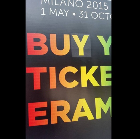 Un altro refuso, dopo il totem di Fiera Milano che pubblicizzava la vendita di biglietti per l’Expo. “Acquista in fiera il tuo biglietto”, recitava il cartellone luminoso. Ma nella traduzione inglese qualcosa è andato storto e “BuY your Ticket” è diventato “BuT your Ticket”. Alla fine ci hanno messo una toppa, coprendo la “t” con una “y”. Ma tecnicamente anche la data in inglese è errata, dal momento che il mese dovrebbe precedere il giorno e i numeri dovrebbero essere ordinali e non cardinali.