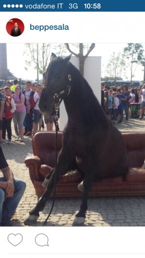 MILANO – Questa foto ritrae un cavallo stanco che si siede su un divano fuori dagli ingressi dei cancelli di Expo a Cascina Merlata. La foto è stata postata sul web da Giuseppe Sala, il commissario di Expo che certifica: “Giuro che è una foto vera”. Secondo Sala che ammette di non averci creduto neanche lui appena l’ha visto, si tratterebbe di un “cavallo stanco” che si è seduto tra gli sguardi divertiti dei bambini in gita scolastica.