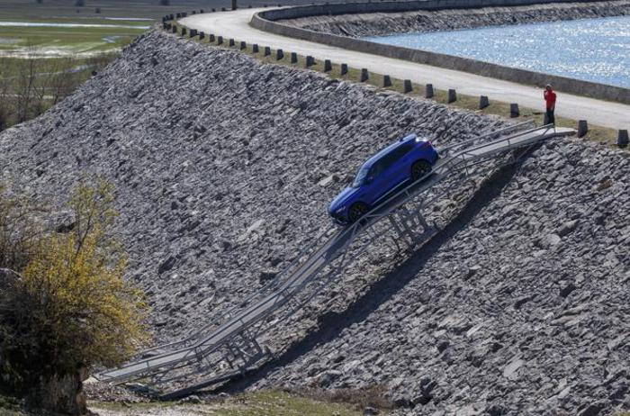 L’errore di percorso, generato da una falsa mappatura presente nel pur sofisticato sistema di navigazione (anche una mulattiera nelle foto satellitari viene spesso interpretata come ‘strada’) ha messo in evidenza su quello che era in realtà un fondo di torrente le grandi doti della F-Pace, della sua robusta struttura quasi interamente in alluminio e delle sospensioni a corsa lunga (derivate dalla F-Type) oltre che di tutta la sofisticata elettronica di controllo della trazione integrale.