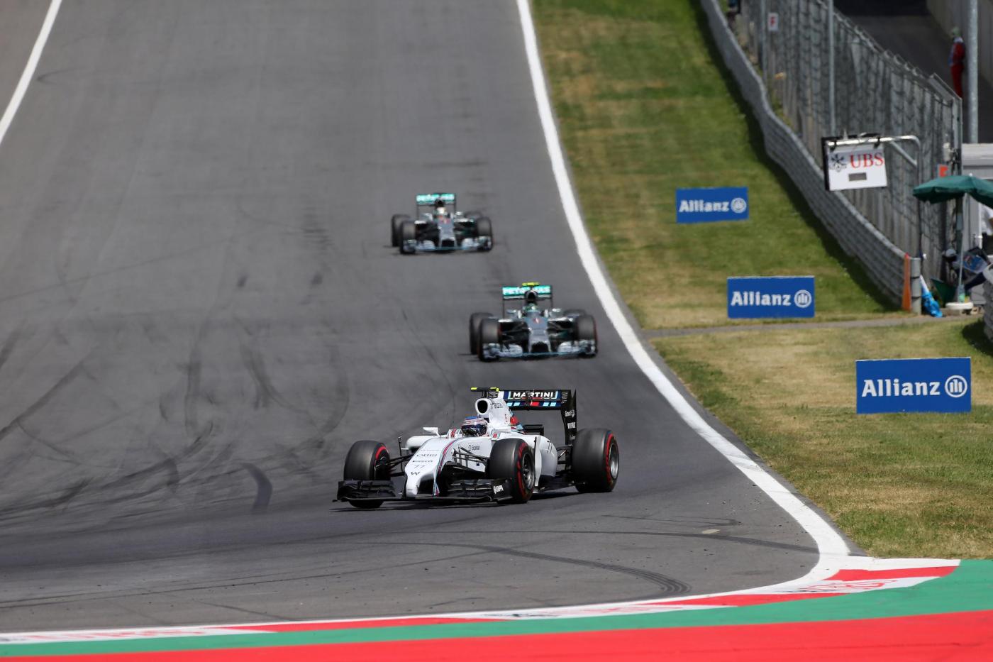 Quinto Fernando Alonso (Ferrari), preceduto da Felipe Massa (Williams). Per la Mercedes, dopo il passaggio a vuoto in Canada, dove aveva vinto Ricciardo (Red Bull), si tratta della settima vittoria e della sesta doppietta stagionale. Rosberg ha ora 29 punti di vantaggio su Hamilton. A punti sul “Red Bull Ring” sono andati anche Sergio Perez con la Force India, Kevin Magnussen con la McLaren, Daniel Ricciardo (Red Bull). Nono posto per Nico Huelkenberg, con la Force India), che ha preceduto Kimi Raikkonen con la seconda Ferrari. Il campione del mondo in carica, Sebastian Vettel, si è ritirato per problemi meccanici.
