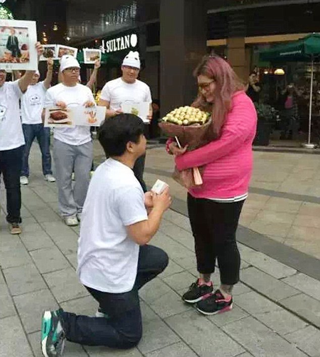 Alla fine Yan ha preso peso e lui le ha chiesto la mano. E lo ha fatto in pubblico, in mezzo alla strada, con tanto di passanti che applaudivano alla scena.