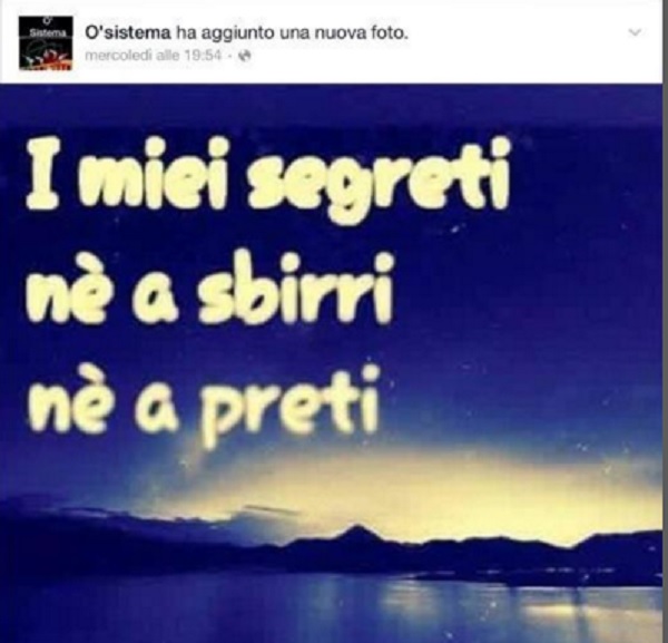 Ma non è ovviamente tutto. Altri, anche più piccoli, pubblicano foto di coltelli a serramanico, oppure intere collezioni di Rolex presi chissà dove e soprattutto chissà come. È una esibizione continua di beni di lusso e di aggressività . Di post sprezzanti nei confronti degli “infami” e delle forze dell’ordine. “Stann’ semp’ annanz’ a me..chitemm…”.
