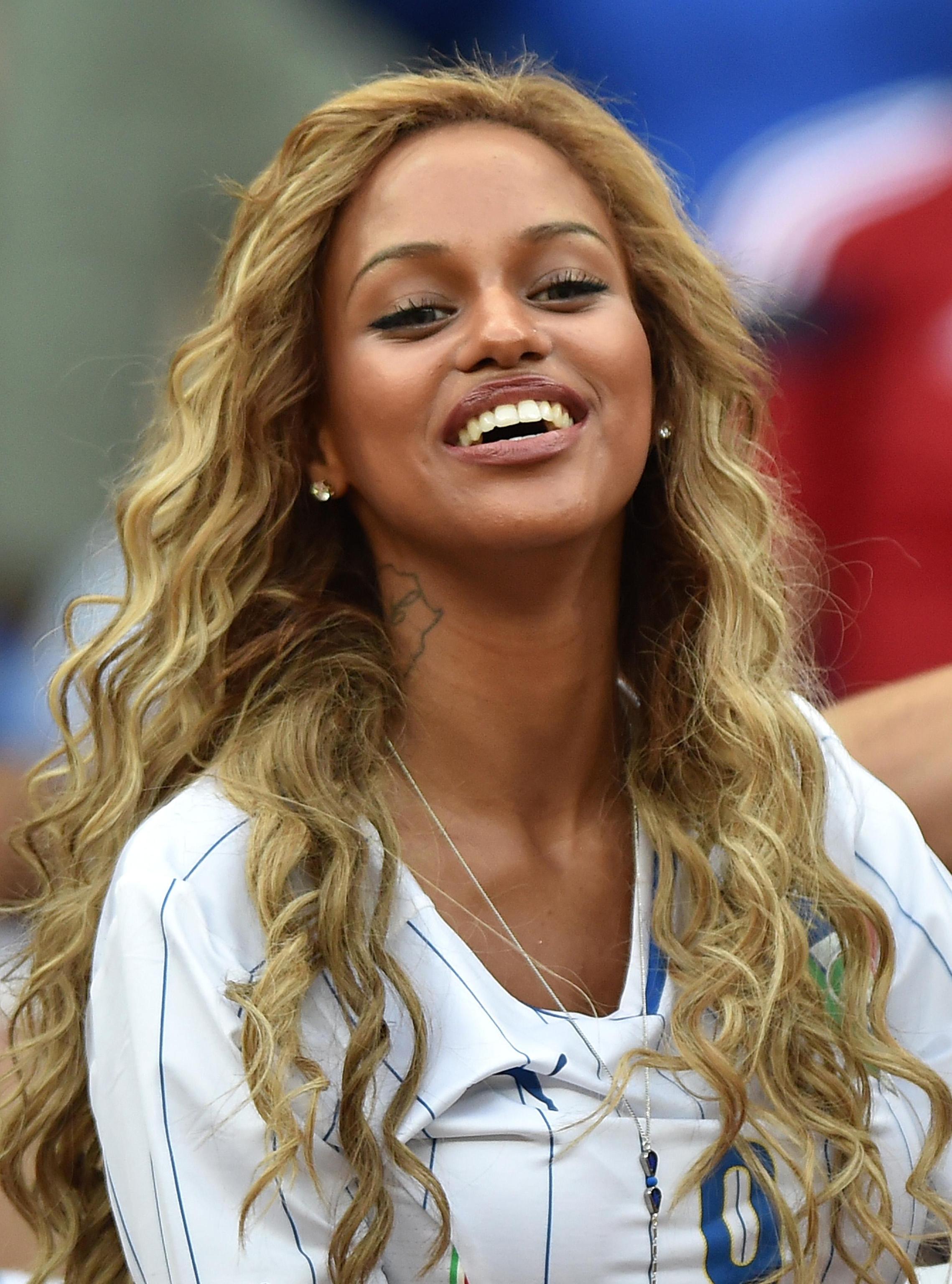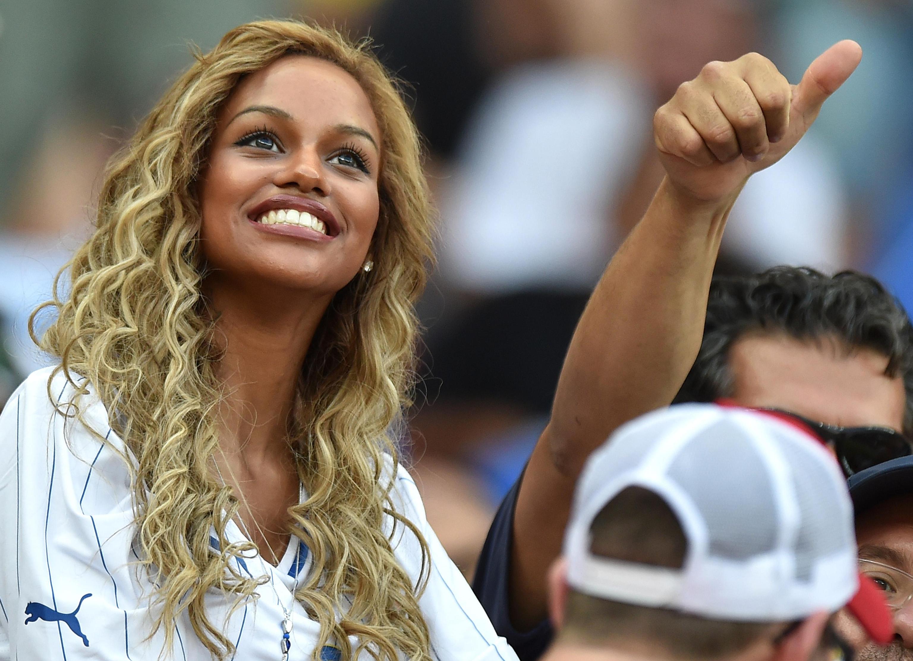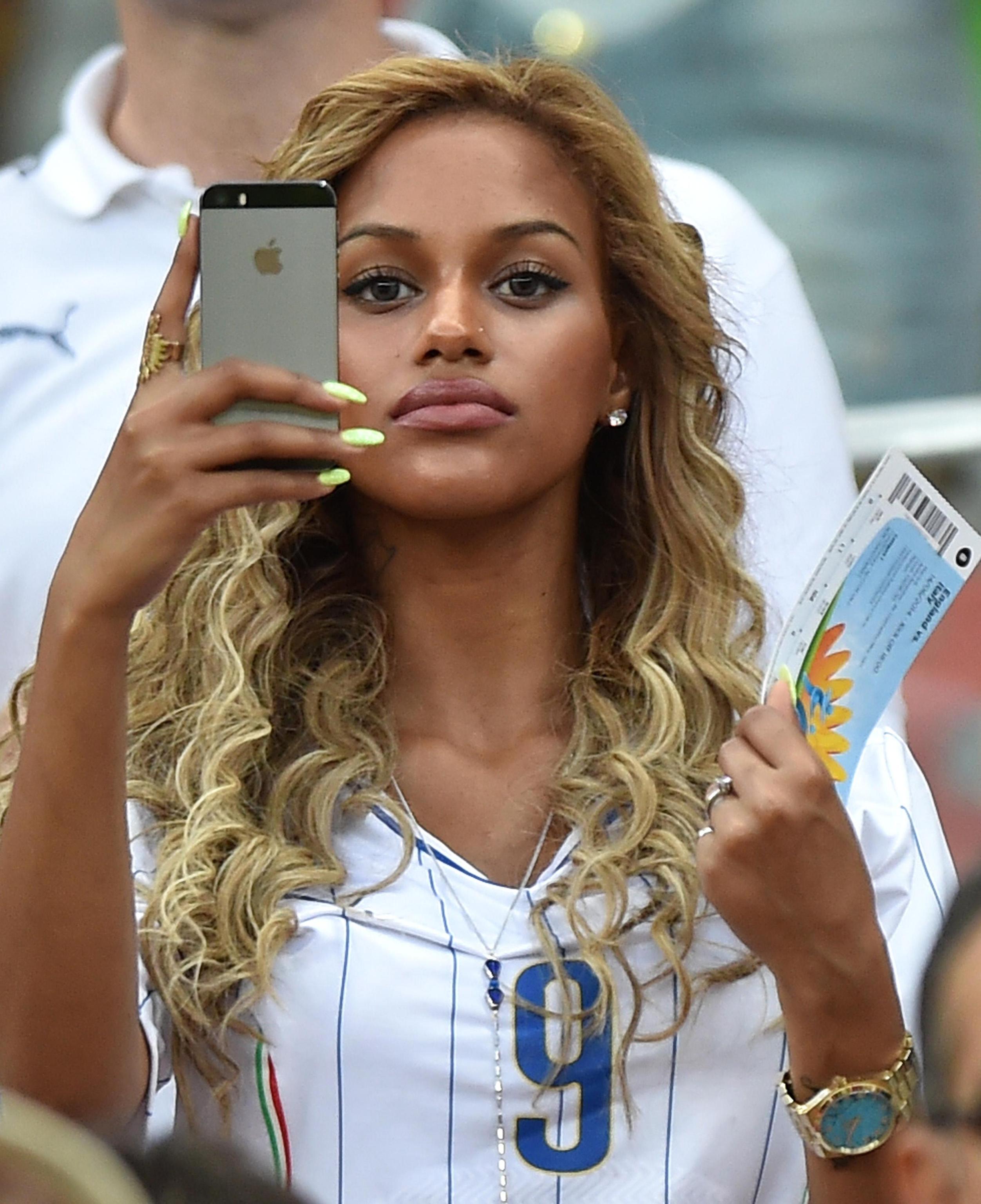 La ragazza belga, in tribuna con Balo-maglia di rito, รจ stata una delle poche mogli/fidanzate presenti allo stadio per la prima mondiale della nazionale di Prandelli.