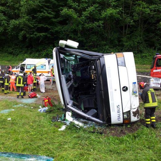 BELLUNO – Stavano andando ai campionati giovanili di nuoto di Lignano Sabbiadoro (Udine) quando il pullman su cui viaggiavano è uscito di strada e si è ribaltato. Molti dei quaranta piccoli nuotatori che erano a bordo si sono feriti, alcuni in modo grave. I bambini erano partiti da Cavalese (Trento) ed erano sulla strada regionale all’altezza di Carpen, una frazione di Feltre, in provincia di Belluno. Ad un certo punto il mezzo è uscito di strada e si è adagiato su un fianco. Parte del tetto ha schiacciato alcuni sedili.