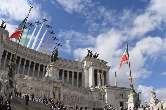 Con l’omaggio del capo dello Stato, Sergio Mattarella, alla tomba del Milite Ignoto al Vittoriano, sono cominciate le celebrazioni per la Festa nazionale della Repubblica, che avranno il loro momento centrale a partire dalle 10, con la parata militare in via dei Fori Imperiali. Mattarella è giunto all’Altare della Patria accompagnato dal ministro della Difesa Roberta Pinotti e dal capo di Stato maggiore della Difesa Claudio Graziano. Sulle scale del Vittoriano, a ricevere il capo dello Stato, ci sono tra gli altri, il presidente del Senato, Piero Grasso, quello della Camera, Laura Boldrini, il presidente del Consiglio, Matteo Renzi, il presidente della Corte Costituzionale, Paolo Grossi. La banda dell’Esercito ha quindi intonato l’Inno nazionale e le Frecce tricolori hanno sorvolato il Vittoriano. Dopo l’alzabandiera solenne e la deposizione di una corona d’alloro sul sacello del Milite Ignoto, Mattarella lascerà Piazza Venezia per passare in rassegna le truppe. La parata – alla quale parteciperanno circa 3.600 persone, tra militari e civili – sarà aperta quest’anno da 400 sindaci, in rappresentanza degli 8.000 Comuni italiani.