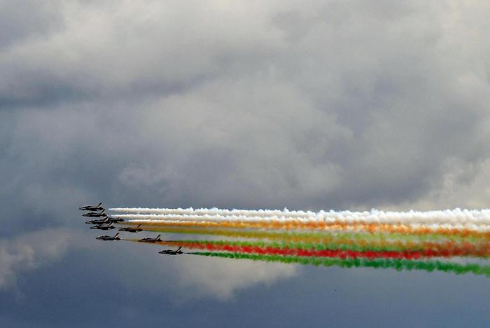 The aerobatic demonstration team of the Italian Aeronautica Militare, “Frecce Tricolori”, perform during the Republic Day in Rome, Italy, 02 June 2016.