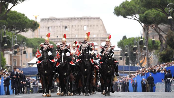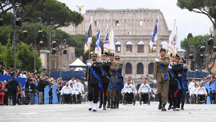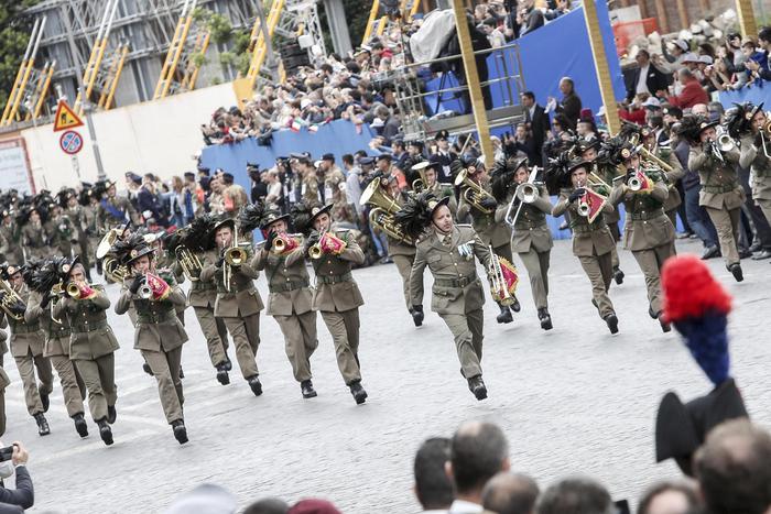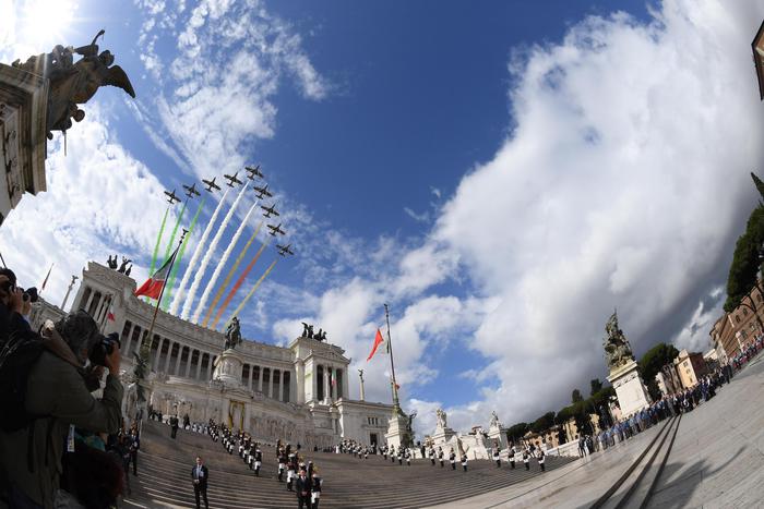 Tra le novità della Festa, anche la partecipazione di rappresentanti di 53 scuole secondarie di secondo grado di tutta Italia selezionate dal progetto annuale del ministero dell’Istruzione, del Senato della Repubblica e della Camera, che si intitola ‘Dalle aule parlamentari alle aule di scuola. Lezioni di Costituzione’. Nel solco della tradizione la giornata sarà aperta dal capo dello Stato, Sergio Mattarella, che – accompagnato dal ministro della Difesa, Roberta Pinotti e dalle più alte cariche dello Stato – deporrà una corona d’alloro al Sacello del Milite Ignoto per ricordare tutti i militari e i civili che hanno servito e servono lo Stato. Il momento clou sarà la parata su via dei fori Imperiali, che vedrà sfilare tra il Colosseo e piazza Venezia 3.600 persone – tra civili e militari – articolate in sette settori: uniformi storiche con bandiere delle organizzazioni internazionali e degli organismi multinazionali, a seguire uomini e donne di Esercito, Marina Militare, Aeronautica, Carabinieri, i Corpi militari e ausiliari dello Stato, i Corpi armati e non dello Stato, tra cui i ragazzi del servizio civile nazionale. Ci saranno anche gli atleti del Gruppo Sportivo Paralimpico della Difesa, reduci dalle vittorie agli Invictus Games di Orlando (Florida). Non mancherà il sorvolo dell’area da parte delle Frecce Tricolori che lasceranno una scia rossa, bianca e verde nei cieli della Capitale. Il primo passaggio della formazione è in programma intorno alle 9.15 sull’Altare della Patria, per gli onori al Milite Ignoto; il secondo passaggio ci sarà invece al termine della rivista militare, intorno alle 11. Questa mattina due aerei della Pattuglia Acrobatica Nazionale hanno fatto le prove sorvolando i Fori.