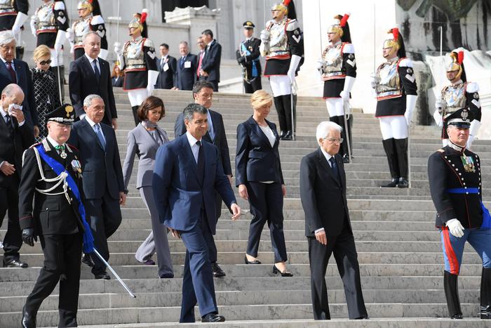 Italian President Sergio Mattarella (3L) at the “Altare della Patria” (Altar of the Fatherland) during the Republic Day in Rome, Italy, 02 June 2016.