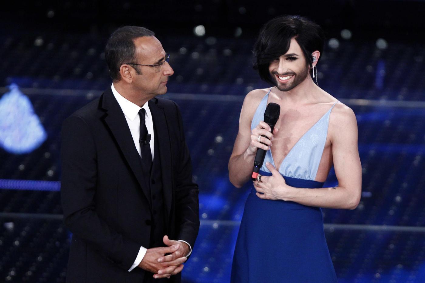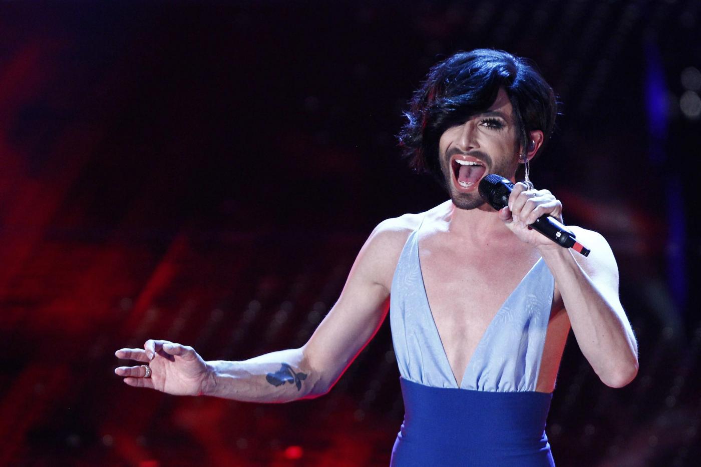 Conchita Wurst ospite della seconda serata di Sanremo 2015 – LaPresse