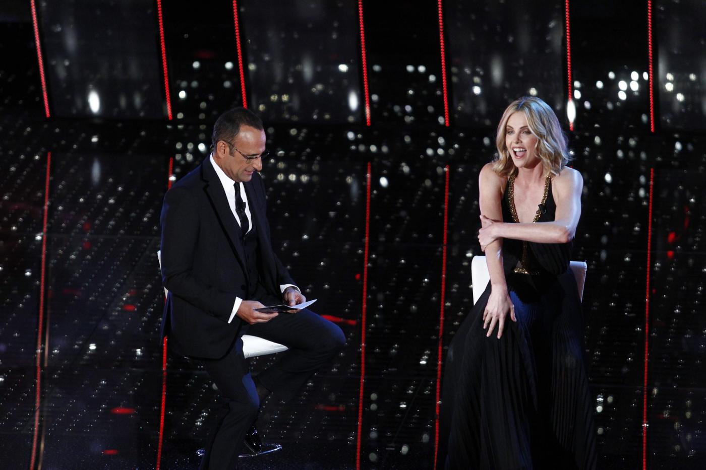 SANREMO – Festival di Sanremo 2015: FOTO seconda serata: Charlize Theron, Conchita Wurst… Rivedi tutta la puntata numero 2 della sessantacinquesima edizione del Festival della Canzone Italiana: l’intervista all’attrice premio Oscar Charlize Theron, la drag queen austriaca barbuta Conchita Wurst, vincitrice dell’Eurovision Song Contest; Biagio Antonacci; Vincenzo Nibali, per lanciare il Giro d’Italia che parte da Sanremo il 9 maggio; i Pilobolus Dance Theatre e la discussa performance del comico Angelo Pintus. Guarda le FOTO della prima serata.