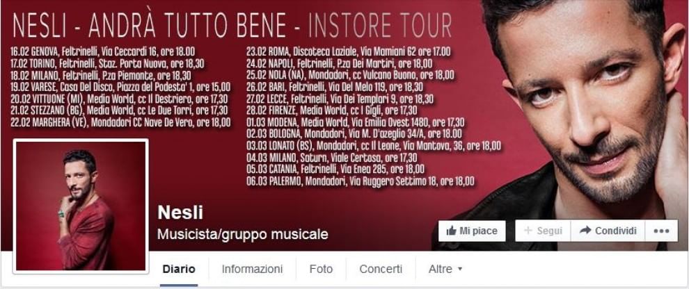 - Nek, 420.531 fan su Facebook – 199.000 su Twitter.