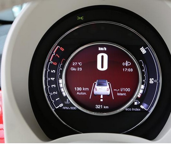 “Design vintage ma grafica e funzioni completamente digitali per il tachimetro: un display Tft da 7” disponibile a richiesta. Al centro sono proiettate tutte le informazioni dei computer di bordo, a sinistra il contagiri e a destra l’indicatore di velocità. C’è anche il suggeritore che consiglia di cambiare marcia per risparmiare carburante.Design vintage ma grafica e funzioni completamente digitali per il tachimetro: un display Tft da 7” disponibile a richiesta. Al centro sono proiettate tutte le informazioni dei computer di bordo, a sinistra il contagiri e a destra l’indicatore di velocità. C’è anche il suggeritore che consiglia di cambiare marcia per risparmiare carburante”.