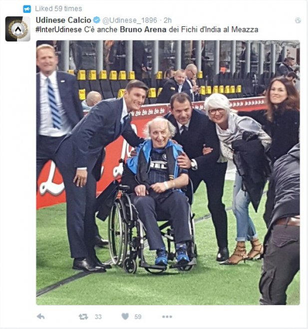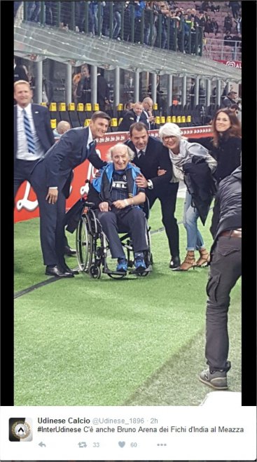 MILANO – Nel gennaio 2013, Bruno Arena dei Fichi d’India è stato colpito da un’emorragia celebrale. Il comico, dopo aver lottato contro la malattia non ha mai perso la sua grande passione per l’Inter e sabato 23 aprile è tornato a an Siro per vedere la partita tra l’Inter e l’Udinese.