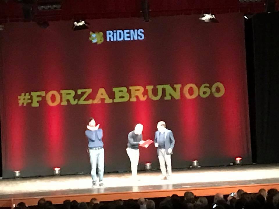 L’evento benefico #ForzaBruno60 è stato voluto dalla moglie Rosy, con l’aiuto dell’amico Claudio Villa. L’idea era quella di regalare al marito una serata indimenticabile e di raccogliere fondi perché Bruno possa appunto tornare ad avere libertà di movimento. Un’auto attrezzata per il trasporto di persone con disabilità è stata messa a disposizione proprio durante la serata, anche grazie alla raccolta fondi”.