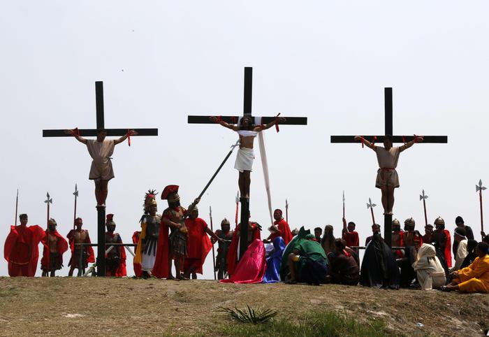 La processione del venerdì santo accomuna i cristiani in tutto il mondo anche se ogni Paese la celebra in modo diverso. Da Gerusallemme a Siviglia da Roma a Manila nelle Filippine. Papa Francesco presiederà intanto questa serra la sua quarta Via Crucis che andrà in onda in diretta Mondovisione dal Colosseo di Roma, in una città blindata dopo gli attentati di Bruxelles (foto Ansa)