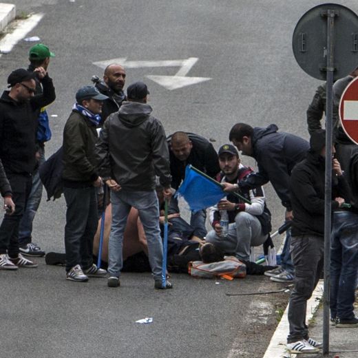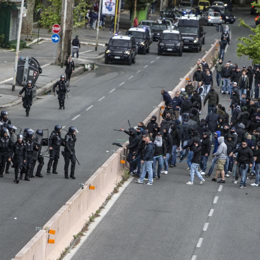 La partita è poi iniziata con 45 minuti di ritardo in un clima surreale. “Una partita di calcio non si può trasformare in una guerra tra bande con episodi di violenza”, ha commentato il presidente del Senato, Pietro Grasso, all’arrivo allo stadio Olimpico. Roma oggi è stata ‘invasa’ da decine di migliaia di tifosi giunti da Napoli e Firenze.