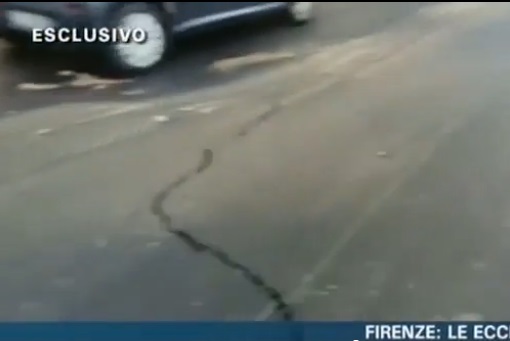 FIRENZE – Prima dell’apertura dell’immensa voragine che si è aperta a Firenze, sul Lungarno c’erano delle evidenti crepe sull’asfalto, formatesi all’altezza del punto in cui le auto inghiottite erano parcheggiate.