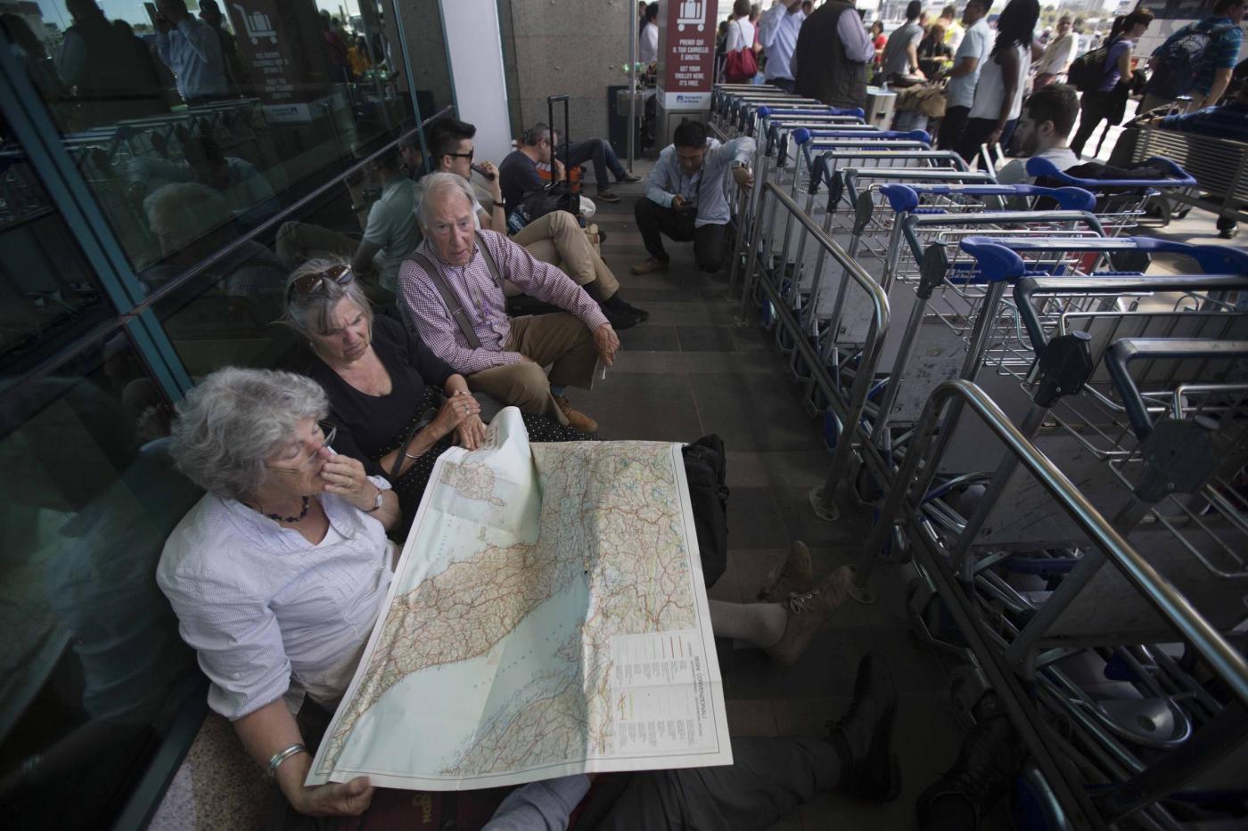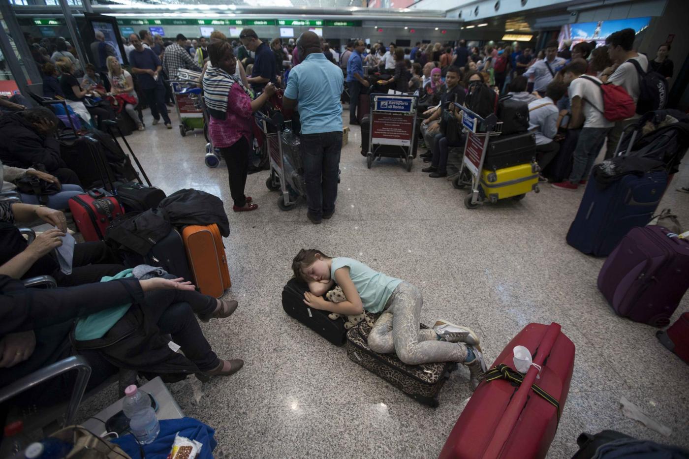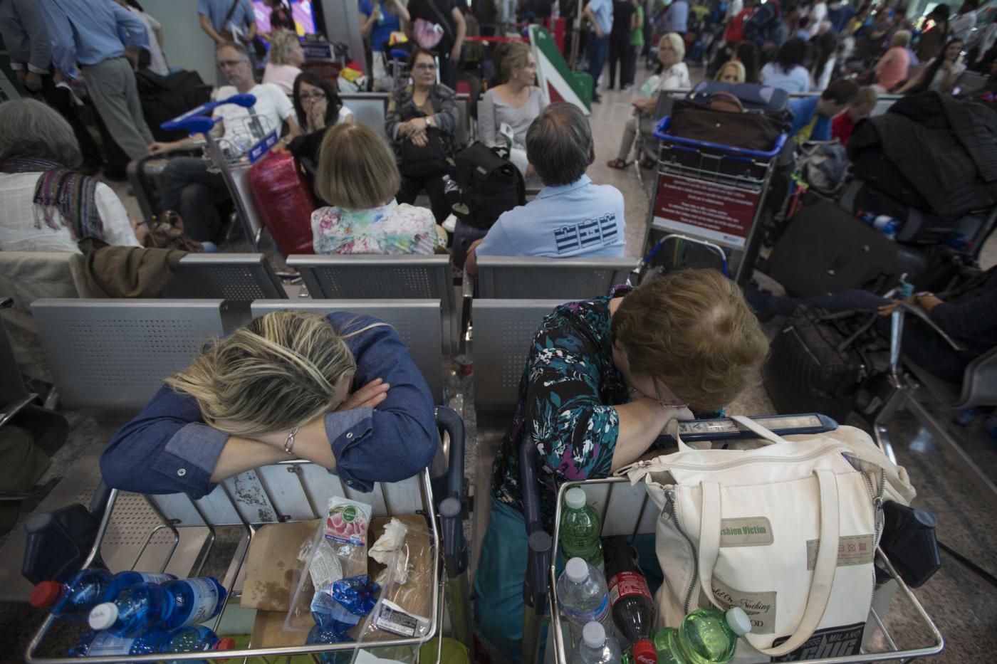 Ma dopo una notte passata a terra, all’interno e all’esterno è un via vai di passeggeri, bagagli e borse in mano, alcuni con la mascherina di protezione, che dopo la lunga fila ai check-in, vanno a cercare di raggiungere gli altri due Terminal, dove è possibile effettuare i controlli di sicurezza. A piedi, verso il Terminal 1 dove, accanto ai voli Alitalia, Air France e Klm, sono stati concentrati quelli degli altri vettori che operano sul medio raggio; al Terminal 5 quelli che si imbarcano sugli intercontinentali, dopo una seconda, lunga attesa della navetta che li porta a destinazione. Le conseguenze dell’incendio, infatti, hanno reso impraticabili le postazioni dei varchi di sicurezza e del controllo passaporti collegati al Terminal 3. Motivo che consiglia di anticipare l’arrivo in aeroporto dopo aver tentato di avere informazioni dalla compagnia aerea di riferimento. ”Abbiamo dormito in un hotel della zona – ci dice Robert Murphy, un turista americano – e adesso, con mia moglie, siamo da tre ore in aeroporto. Speriamo di concludere entro la mattinata”. A pieno ritmo ”lavora” il Terminal 1, affollato come non mai, dove gli addetti ai lavori cercano di limitare il disagio dei passeggeri. Ma sono ancora molti i voli che risultano ”cancelled” e che, in base alle previsioni di Enac, dovrebbero rappresentare il 50 per cento della capacità operativa del Leonardo da Vinci. Le foto della notte passata all’interno dei terminal pubblicate da LaPresse.
