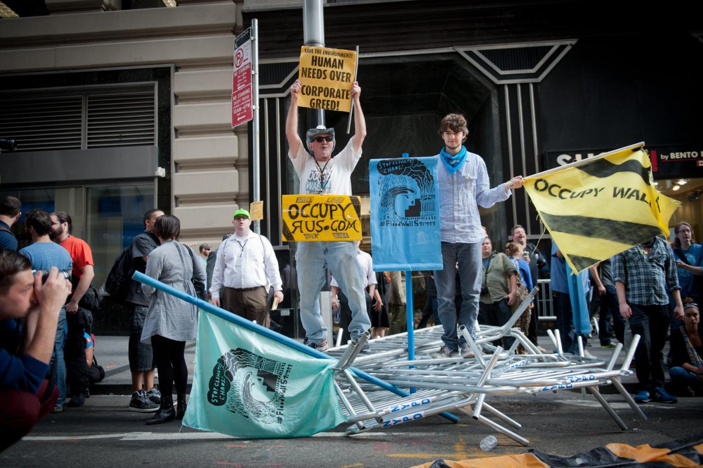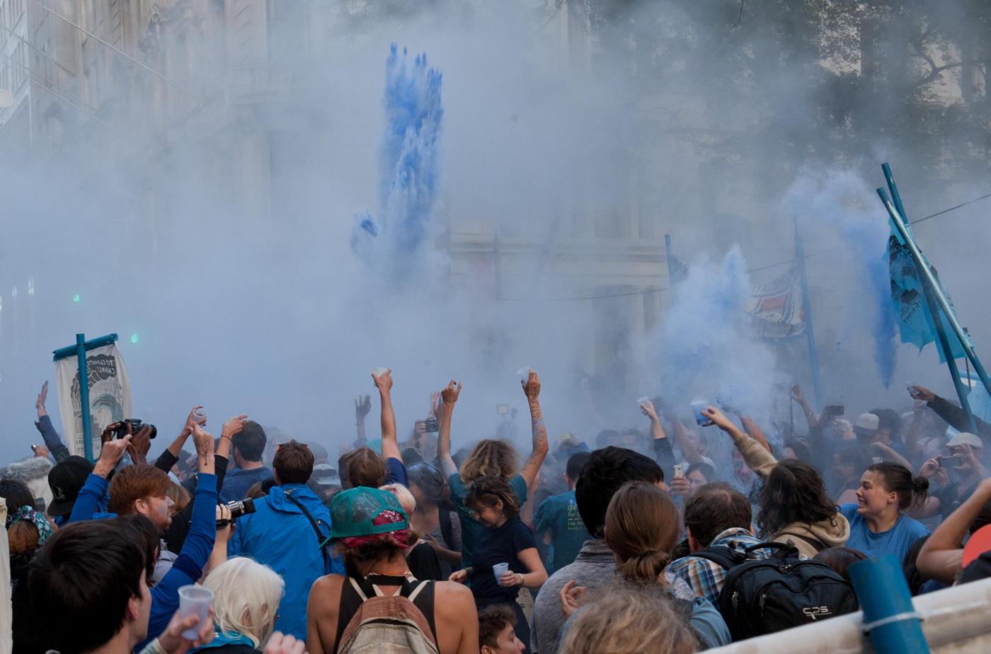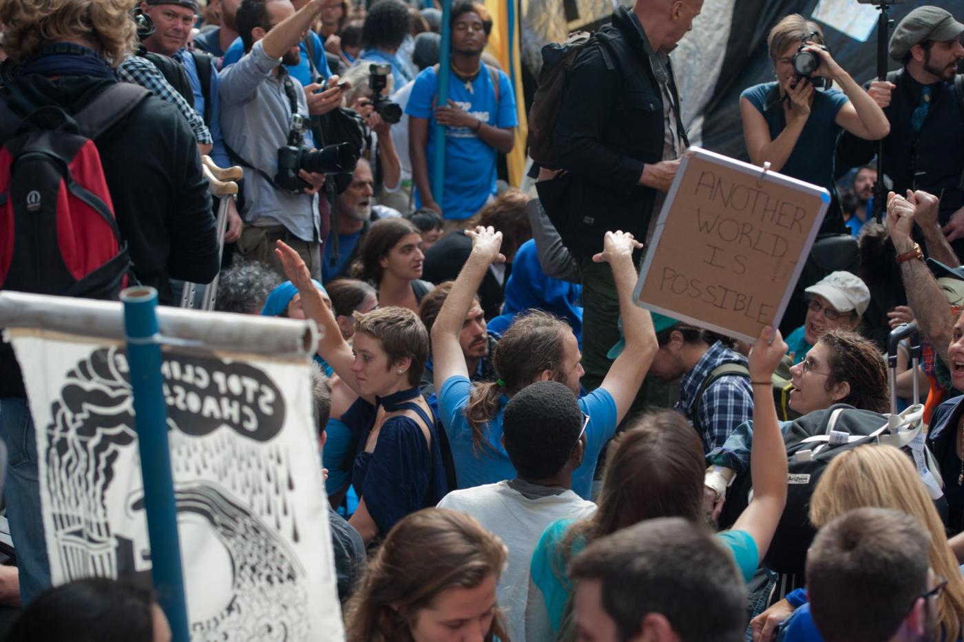 NEW YORK – La polizia di New York ha arrestato circa 100 persone che a Wall Street hanno preso parte alle proteste contro un sistema di interessi economici e finanziari considerato responsabile dei cambiamenti climatici. La mobilitazione del movimento #FloodWallStreet rievoca l’Occupy Wall Street di tre anni fa. In quell’occasione, i manifestanti occuparono per mesi un parco nei pressi del cuore finanziario d’America. Questa nuova manifestazione è avvenuta in vista del Climate Summit che il segretario generale dell’Onu Ban Ki-moon ha convocato al Palazzo di Vetro per discutere con circa 120 leader mondiali dell’emergenza clima.