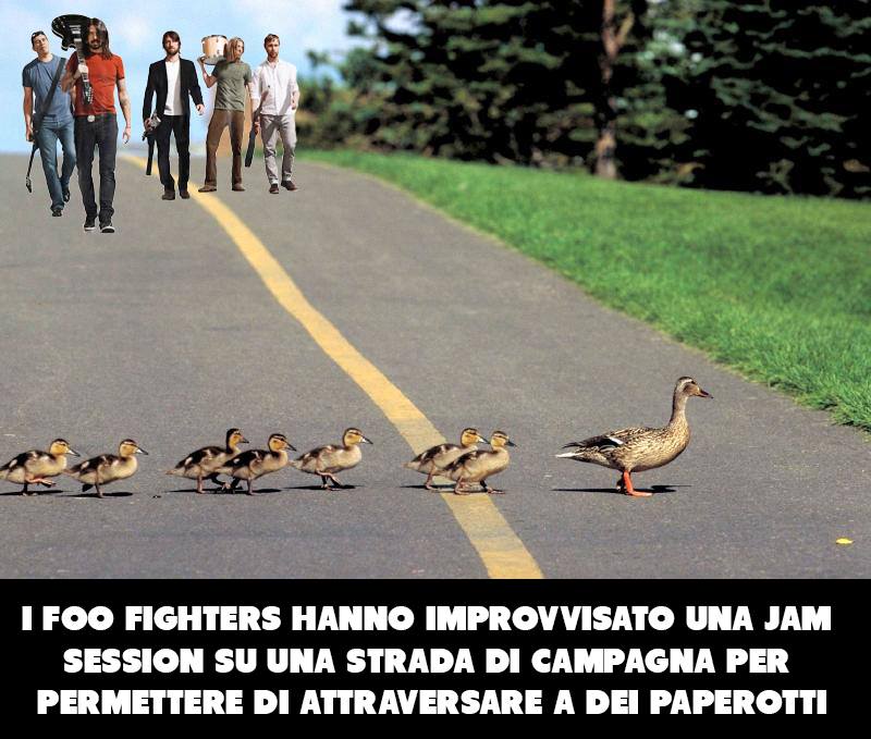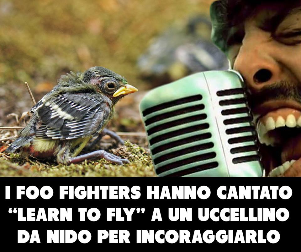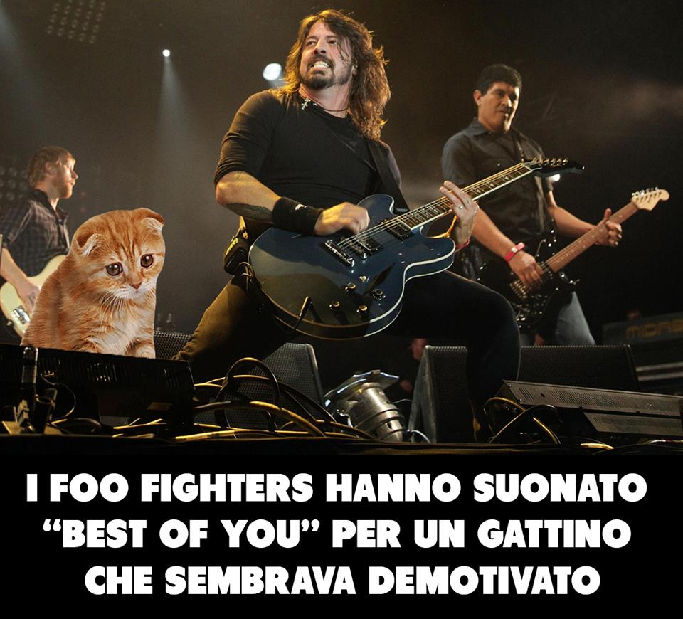 C’è il gattino demotivato, risollevato dalla potente Best of You. C’è l’uccellino a cui hanno cantanto Learn to fly per incoraggiarlo a volare. Ma c’è anche Paolo Brosio a cui i Foo Fighters avrebbero tirato su il morale con My Hero dopo lo scherzo della finta telefonata di Papa Francesco.