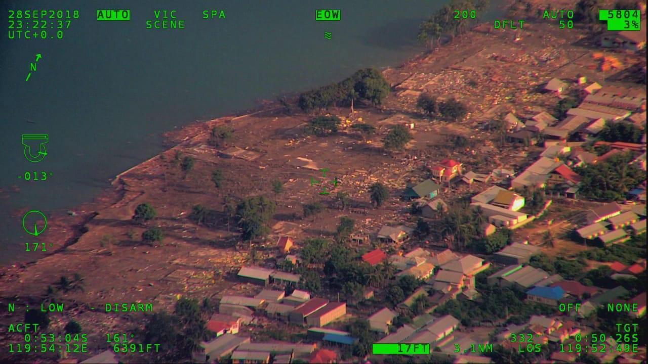 Il disastro provocato prima dal terremoto poi dallo tsunami, è mostrato dalla pubblicazione di alcune foto dall’alto messe a disposizione dal Consiglio nazionale indonesiano per la gestione dei disastri (BNPB).