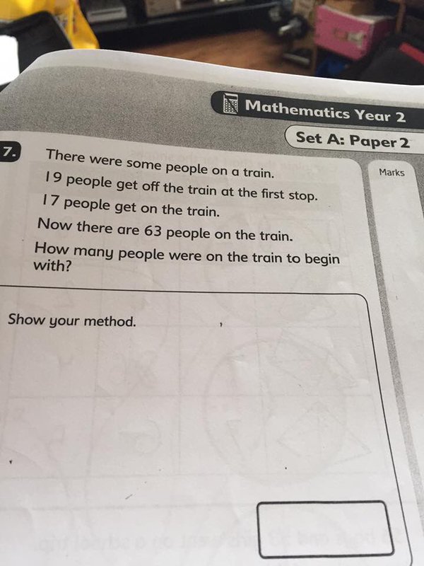 LONDRA – Quanti passeggeri ci sono sul treno in questo momento? L’ultimo indovinello che impazza sul web è questo. A pubblicarlo per prima è stata una mamma inglese, Louise Bloxham, che, facendo i compiti con il proprio bambino che frequenta la seconda elementare, si è ritrovata davanti questo quesito e ha avuto qualche difficoltà a risolverlo. Ma non è l’unica.
