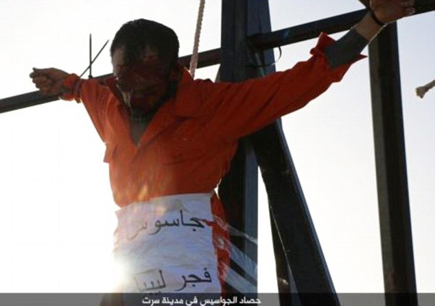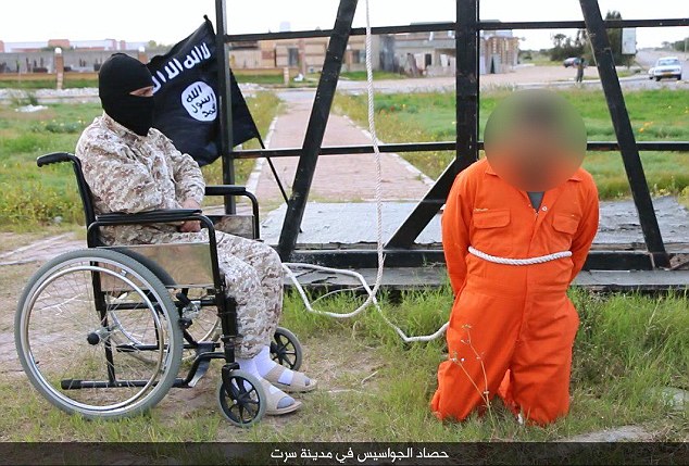 Sulla foto campeggiano una scritta che recita “esecuzione di spie nella città di Sirte” e il logo di Isis Wilayat Tarabulus (provincia di Tripoli, di cui Sirte fa parte). Difficile capire se il boia sia davvero disabile o sia solo una messa in scena ad effetto tipica della propaganda jihadista.