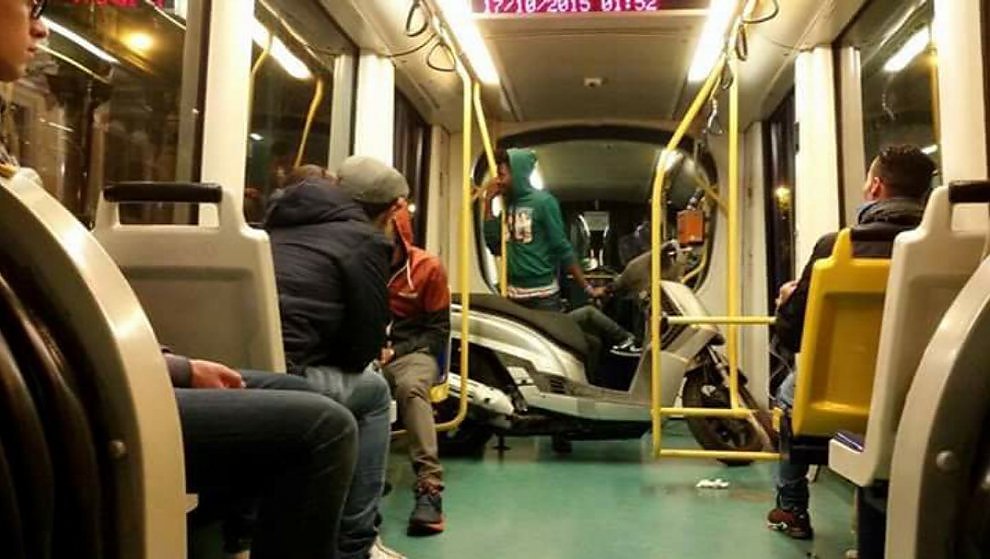 TORINO – Uno scooter, rubato, sul tram 4 a Torino. La scena è stata immortalata da Vittorio Bertola, consigliere comunale del Movimento 5 Stelle, che l’ha pubblicata su Facebook con questa frase di accompagnamento: