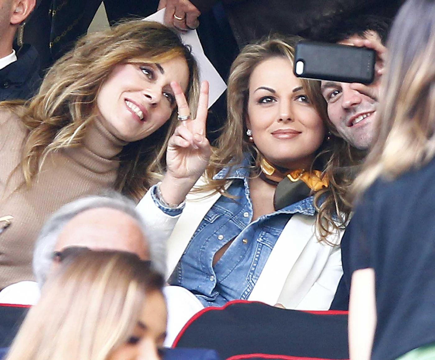 In campo il Milan gioca contro il Parma scatenando, a fine gara, la contestazione dei tifosi rossoneri. La Pascale in questa versione “single” sembra però più interessata a scattare “seflie” e a conversare piuttosto che vedere la partita in campo (foto LaPresse)