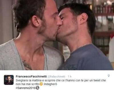 ROMA – Il giorno dopo della prima serata del Festival di Sanremo, è polemica su Twitter per un post che sarebbe stato pubblicato (e poi rimosso) dal profilo di Francesco Facchinetti.