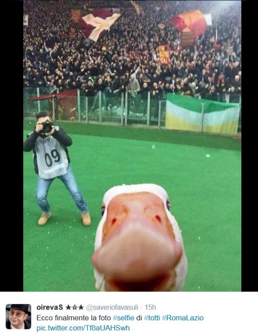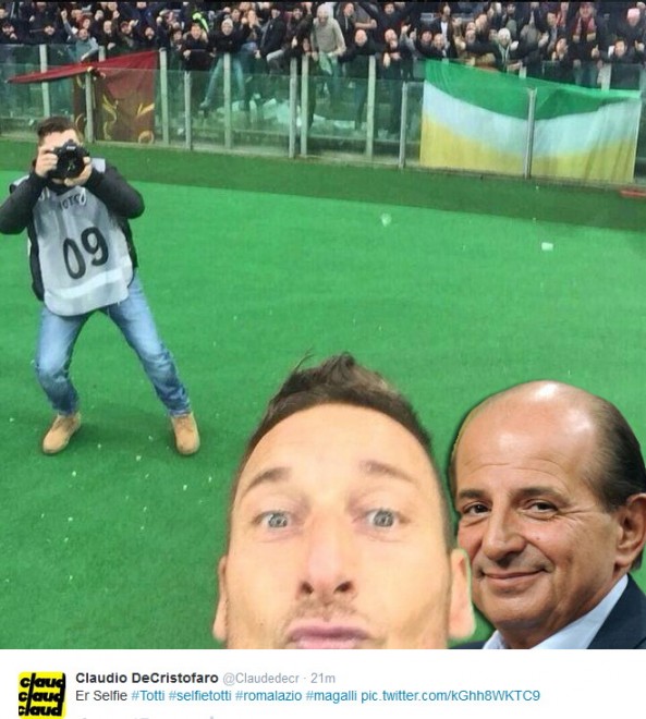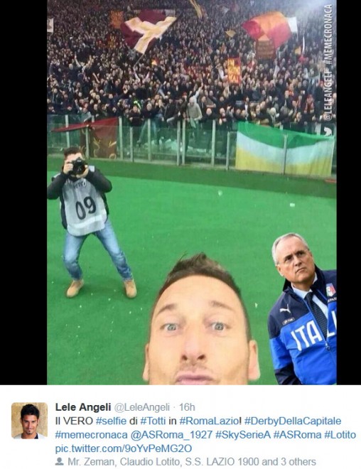 ROMA – È Totti-mania sul Web dopo la doppietta e, soprattutto, il selfie sotto la Curva Sud nel derby finito 2-2, in rimonta, contro la Lazio. Passerà alla storia come la prima esultanza con selfie nel calcio italiano quella di Totti e su Twitter è subito scattata la corsa al fotomontaggio. Totti con Lotito, Totti ironicamente pescato a farsi un selfie tra i trofei della Juventus e anche Totti con Martin Luther King. Insomma Totti ovunque. D’altronde il selfie del capitano in queste ore è stato ampiamente celebrato anche all’estero trovando spazio su tutti i quotidiani sportivi europei.
