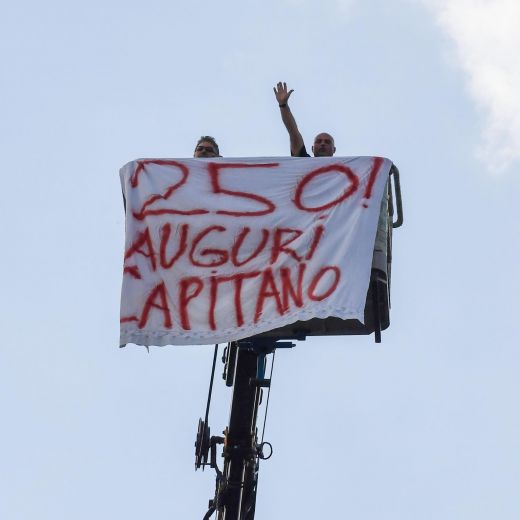 ROMA – Nel giorno del suo 40esimo compleanno, Francesco Totti è stato accolto da un nutrito gruppo di tifosi della Roma all’arrivo a Trigoria. Il capitano giallorosso, prima di entrare nel centro sportivo a bordo della sua auto, si è fermato per scattare alcuni selfie, firmare autografi e ricevere dei regali da parte dei sostenitori romanisti. All’esterno di Trigoria è poi stato esposto uno striscione dedicato al n.10 con sopra scritto: “Un uomo, un simbolo, un amore, un eroe. Due parole: Francesco ” Totti! Auguri”.