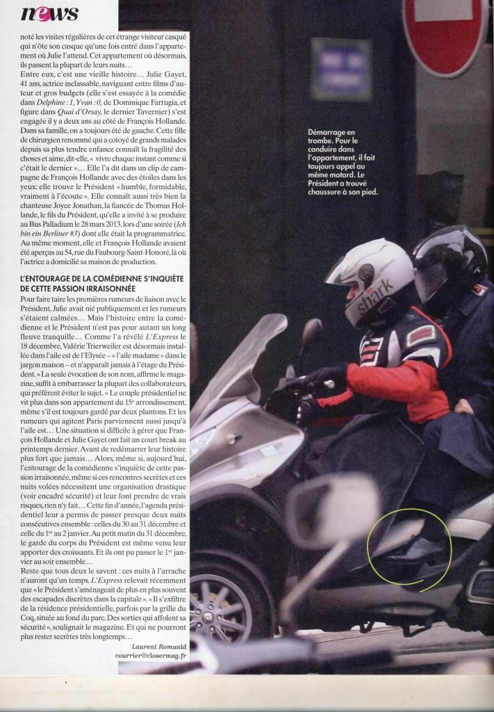 Da quel giorno, per Hollande e Julie ”vedersi è diventato più difficile. Le ripercussioni che hanno avuto quelle rivelazioni, a livello nazionale e anche internazionale, hanno costretto i due amanti a prendere grandi precauzioni”, scrive Closer, sottolineando che ”chiaramente la cosa più facile, per i due, sarebbe stato di mandare tutto a monte. Ma non si cancellano due anni d’amore così facilmente. Francois Hollande e Julie Gayet non erano pronti a abbandonare”.